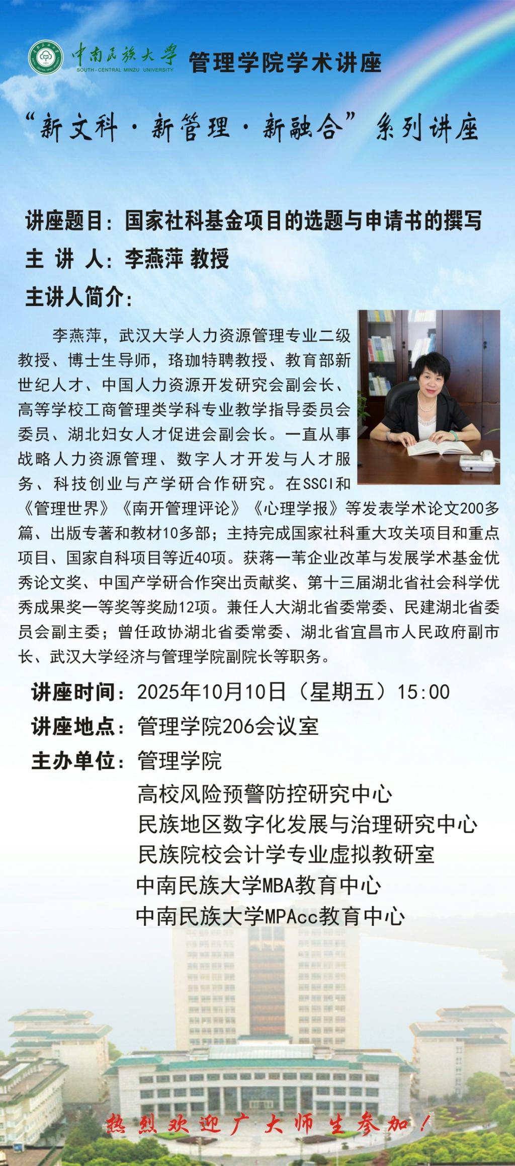 讲座时间:10月10日15:00