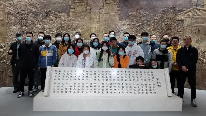 图3 中心党员与电信学院学生于校史馆合影