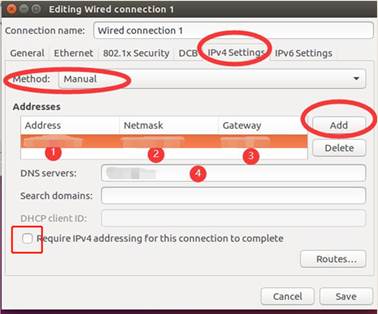 4.按照申请到的IP进行配置输入。如果立即生效需要勾选“Require Ipv4 addressing for this connection to complete”,保存退出。