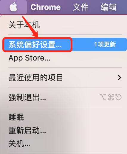 1.点击菜单的苹果小图标,进入"系统偏好设置"。