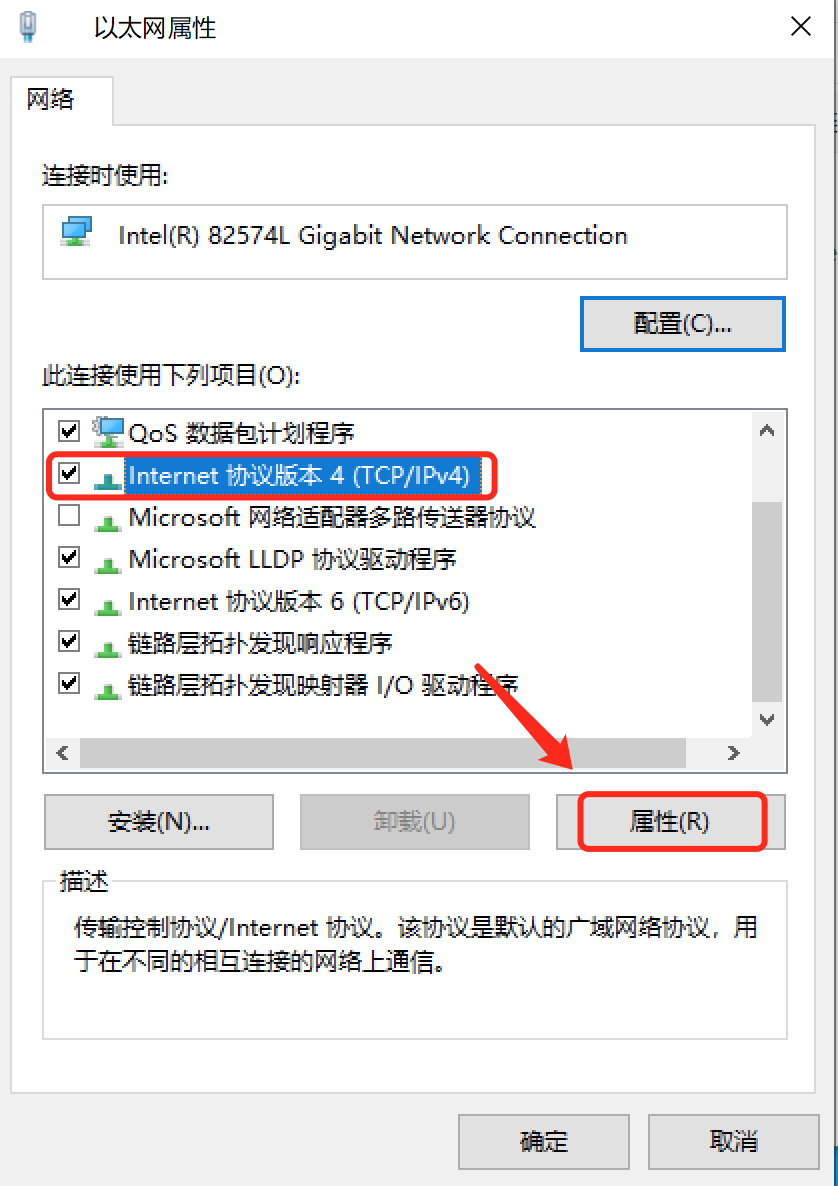 4.选择“Internet协议版本4(TCP/IPv4)”。