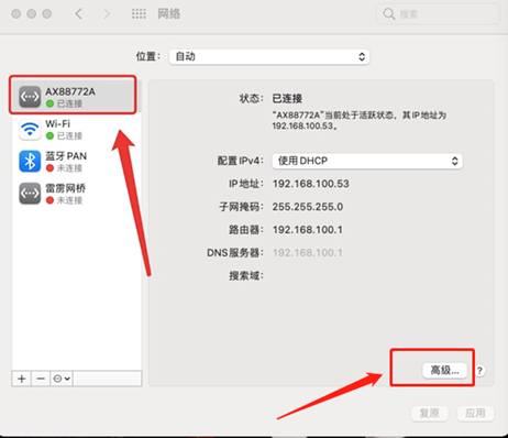 3.找到你要查看MAC地址的网卡,点击右下角的"高级"选项。
