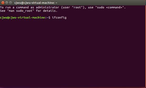 2.接着在终端中输入ifconfig,回车。