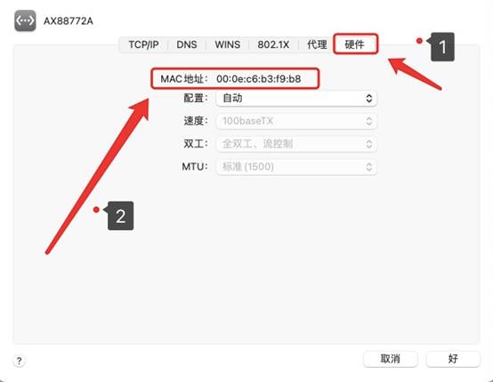 4.在“硬件”栏里,可以查看到MAC地址。