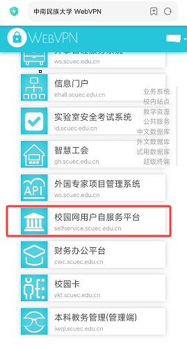 图2 WebVPN登录界面图 图3 校园网用户自服务平台