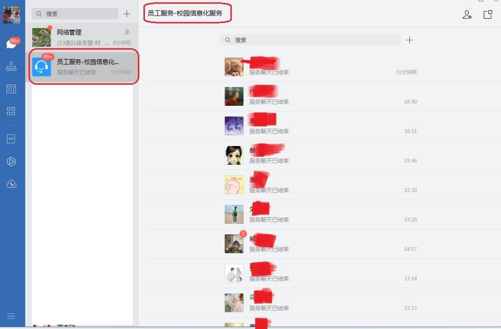 2、进入企业微信“通讯录——员工服务——校园信息化服务“栏目咨询报修【仅受理校园网业务】:咨询报修校园信息化与校园网相关业务问题。