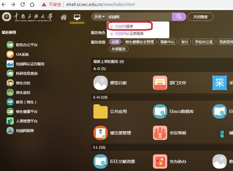 1、进入“信息门户——校园网报修”应用申请报修【仅受理校园网业务】:进入应用,按照表单栏目填报报修申请,或反馈报修校园信息化与校园网相关业务问题。